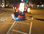 Aparece en una calle de la capital británica una enorme estructura en llamas que parece caída del cielo.
