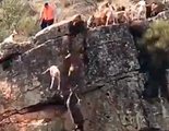 Un vídeo difundido por las redes sociales muestra cómo 12 perros de caza y un ciervo son despeñados por un barranco.