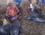 Montan una tortuga laúd: un nuevo caso de terrible maltrato animal