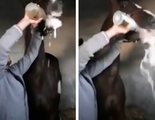 Maltrato animal: un jinete fuerza a su caballo a beber una botella de champagne