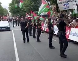 Los manifestantes han mostrado su rechazo ante la presencia del equipo de Israel en la carrera, que ha quedado invalidada.