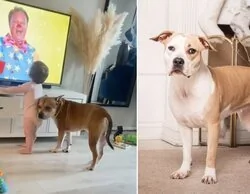 Emotivo momento: un perro protege a un bebé de sufrir una caída