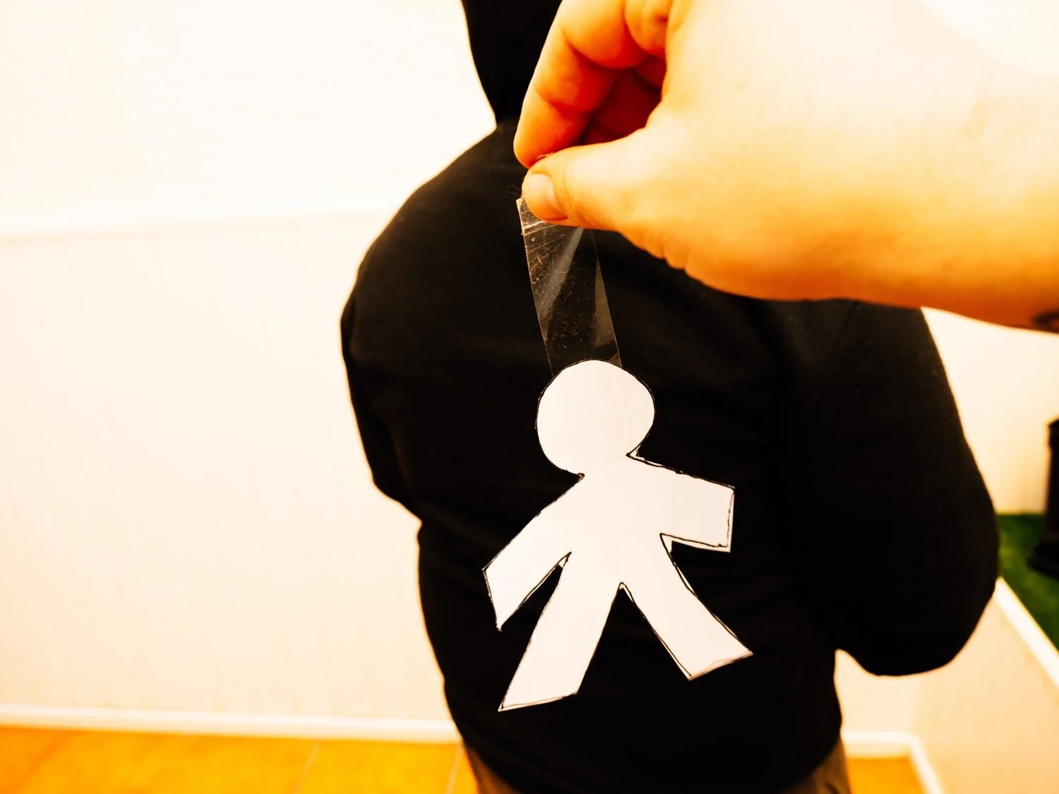 Si hay una broma que esté relacionada con el Día de los Santos Inocentes es esta. Es típico colocar un monigote blanco en la espalda de nuestra víctima. Coge el papel con la forma de esta figura y con cinta adhesiva pégala en la espalda de la persona que quieras con cuidado para que no se entere, puedes darle un abrazo como excusa y pegárselo justo en ese momento. Así, todo el mundo cada vez que le vea por detrás sabrá que día es.