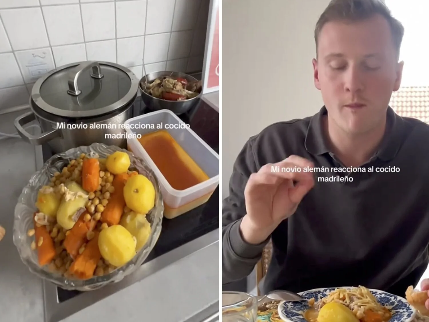 Ante la duda sobre cómo reaccionaría una persona extranjera a un plato que es tan habitual en España, una usuaria de TikTok ha compartido en redes sociales la reacción de su pareja, de origen alemán, al probar el cocido madrileño.