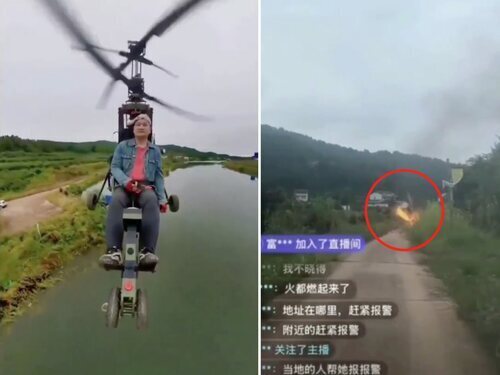 Las brutales imágenes que han circulado por internet muestran cómo Tang Feiji, con más de 100.000 seguidores en redes sociales como Douyin, se estrelló poco después del despegue de su birrotor, que estalló en fuego al estamparse contra el suelo.