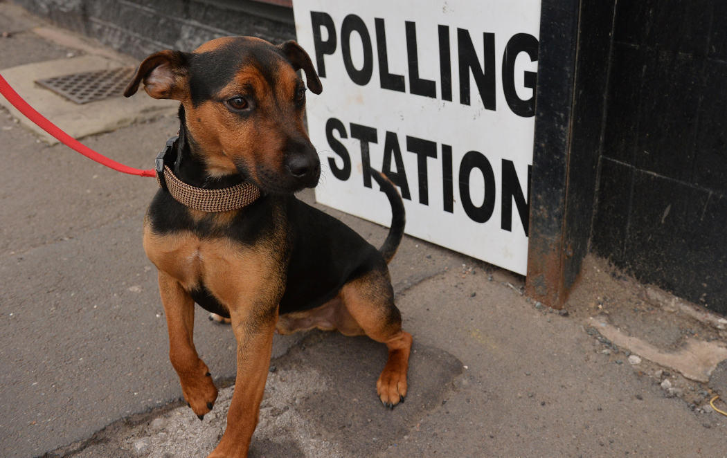 Este encantador perro, creemos que un cachorro o 'puppy', espera a que su amo vote en las elecciones británicas. Estaría genial que hubiera representación ecologista para que este perrito y el resto de animales vean asegurados sus derechos en la medida de lo posible.