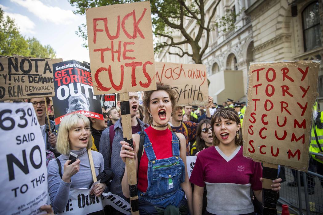 Los discursos nos sonarán en España: contra los recortes de los tories, y descontento por el sistema electoral que ha dado mayoría absoluta a los conservadores con poco más del 30% de los votos. Yl ajuventud en la calle luchando por su futuro. Hay cosas que no cambian...