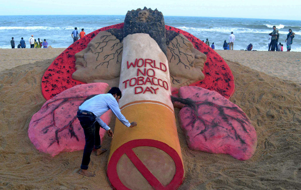 Uno de los países donde se han llevado a cabo numerosas iniciativas en la lucha contra el tabaco es la India. En la imagen podemos ver una impresionante escultura de arena que nos recuerda algunas de las zonas del cuerpo más afectadas por los cigarillos.