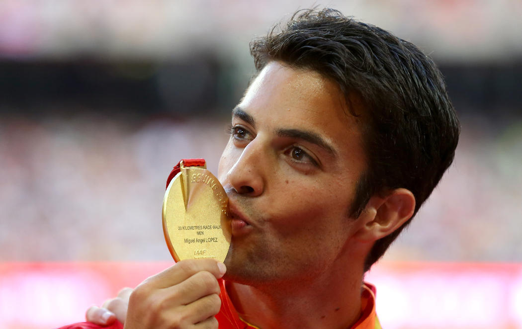 Hace unos días Carolina Marín se proclamaba campeona mundial de Bádmintón, y ahora Miguel Ángel López ha ganado el oro de 20 km marcha en el Mundial de Atletismo, en Pekín. Es el primer oro de López, el que ha recibido el mote de Superlópez, y el segundo que consigue un español en marcha corta, 22 años después de que lo hiciera Valentín Massana.