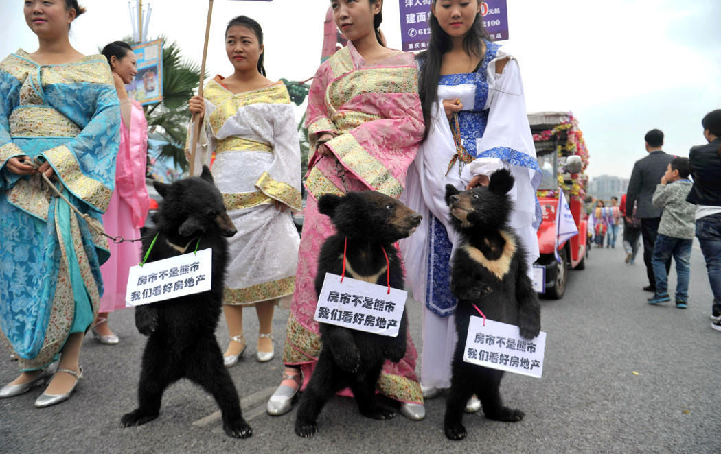 Una empresa inmobiliaria china ha querido usar nada más y nada menos que a unas crías de oso encadenadas para enviar un mensaje de confianza a los potenciales compradores de sus inmuebles.