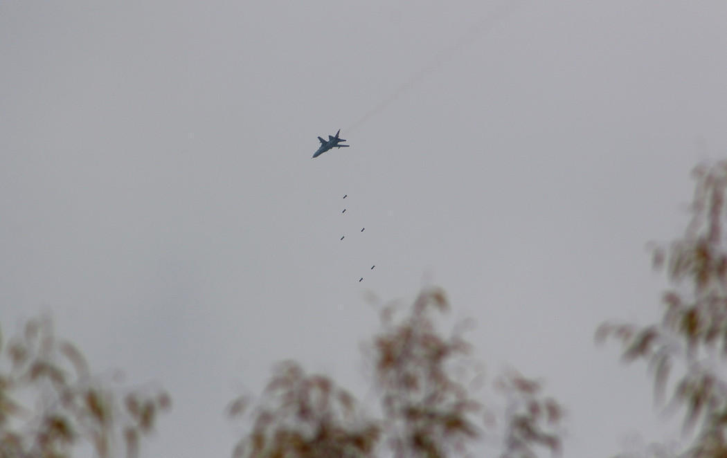 Esta impresionante instantánea muestra las bombas que acaba de soltar un avión ruso sobre Damasco, en Siria. A los pocos segundos volaban calles, edificios y, quién sabe cuántas personas. Porque sabemos que Rusia, de todo menos delicadeza.