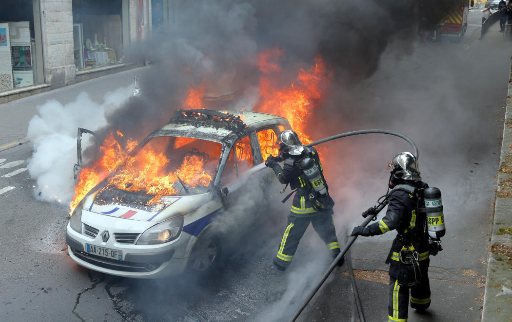 En uno de los últimos episodios que tuvo lugar en París, y que ha terminado con varios jóvenes detenidos, fue el incendio de un coche de policía. Varios manifestantes se acercaron al mismo y lo rompieron a golpes, posteriormente lanzaron un artefacto incendiario (de combustión lenta, porque lo hicieron mientras los polícías seguían en el coche, pero salieron tranquilamente antes de que las llamas se expandieran) y hasta intentaron enfrentarse a uno de los agentes.