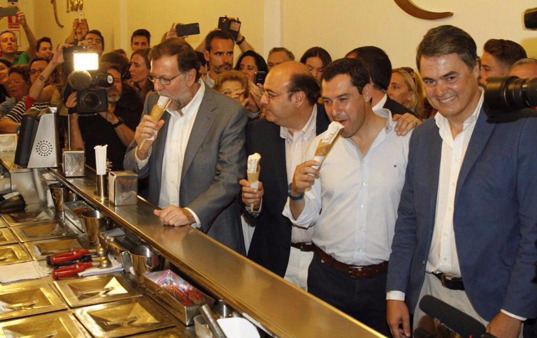 Uno de los partidos que más se está moviendo es el Partido Popular. En la particular gira que Rajoy está haciendo por España como si de una estrella del rock se tratase está visitando todo tipo de poblaciones. El martes por la mañana llegó a Adra (Almería) para realizar el típico mítin en el que le pide a sus votantes lo mucho que mejorará España si votan al Partido Popular, y justo después llegó a Granada donde decidió pasarse por una heladería.