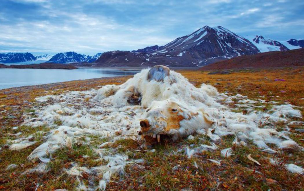 La ganadora de estas fotografías ha sido la de un oso polar en descomposición, tomada por el fotógrafo Vadim Balakin. Él mismo se ha encargado de revelar todo lo que esconde esta foto: "Estos restos de oso polar han sido descubiertos en una de las islas del norte de Svalbard [archipiélago situado en el océano Ártico]. Desafortunadamente no sabemos con seguridad si el oso murió por inanición o por edad, pero si nos fijamos en el buen estado de sus dientes, todo indica a que murió de hambre. Dicen que hoy en día encontraremos cadáveres así muy a menudo: el calentamiento global y el problema del deshielo influyen mucho en la población de osos polares".