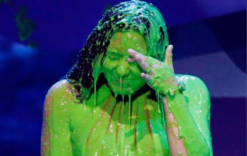 Además, esta gala es conocida por su temible líquido verde, que tiene una textura muy similar a la de un moco y con el que se suele rocíar a algunos de los artistas invitados. La expectación que genera estos momentos supera a la entrega de los propios premios. "La magia del moco" es no saber a quién va a ir dirigido ni cuándo va a caer.