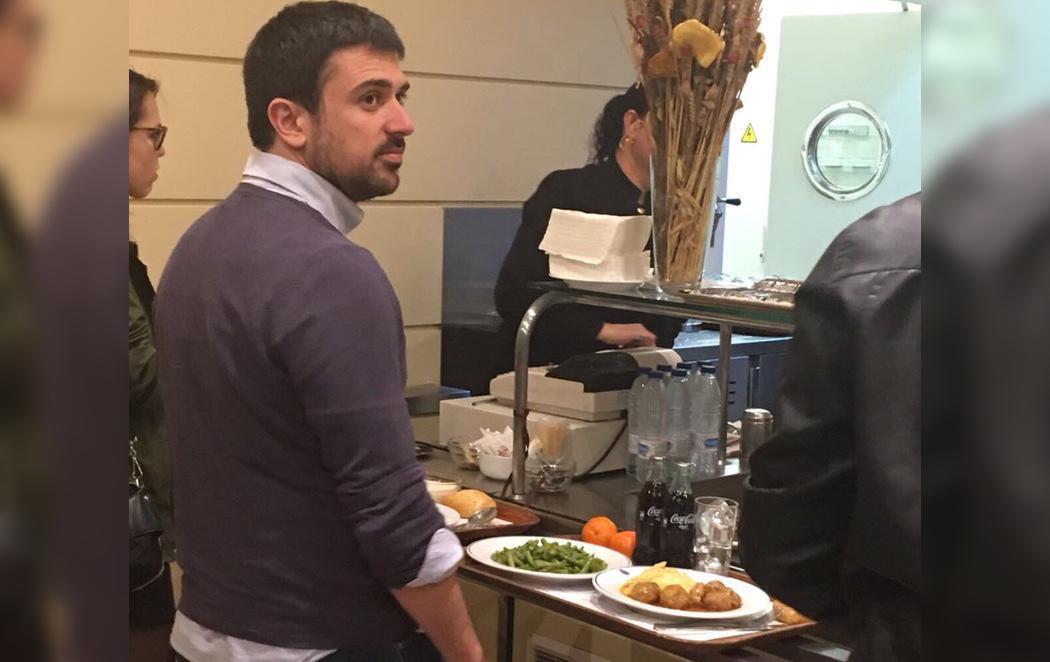 El portavoz de Unidos Podemos en el Senado ha sido "cazado" en el comedor de la Cámara Alta con dos botellas de Coca-Cola en su bandeja a la hora del almuerzo.