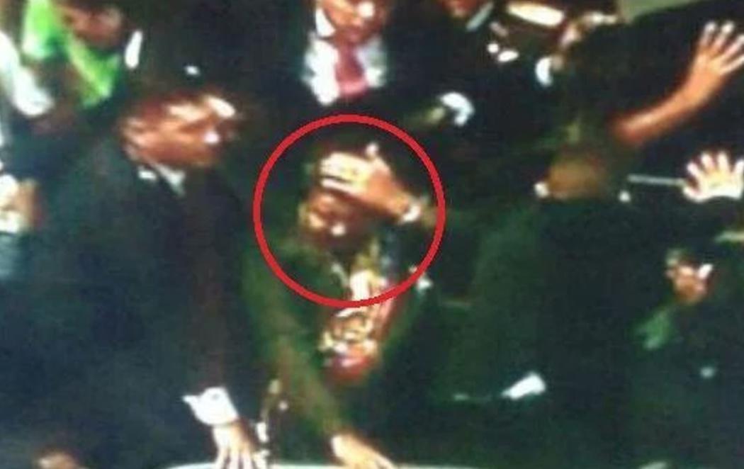 Mientras tanto, una multitud se agolpaba junto al vehículo que portaba al mandatario al descubierto gritando "¡Maldito, maldito!". La televisión gubernamental censuró precisamente el momento en el que un objeto golpea cerca del presidente y éste se lleva una mano a la cabeza.