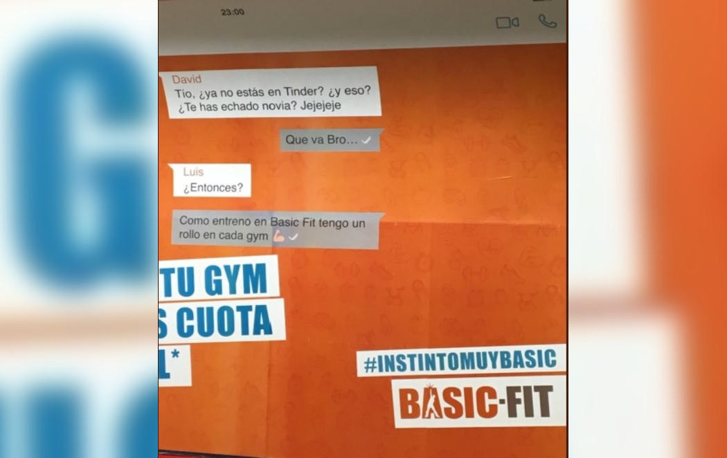 Como siempre, una polémica por el contenido sexista de un anuncio o campaña publicitaria se convierte en una lucha por saber si es así o las mujeres que se quejan son unas exageneradas. En esta ocasión la mecha la ha encendido la cadena de gimnasios BasicFit, una de las más famosas de los gimnasios 'low cost' y que colocaba este cartel publicitario en el metro de Madrid. En ella se puede leer una conversación por WhatsApp donde un amigo le dice al otro que tiene un "rollo" en cada gimnasio BasicFit, así que ha dejado Tinder y liga con sus compañeras de gimnasio, que además hay muchos por la capital.