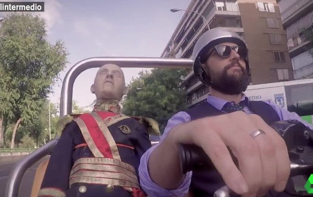 En mitad del debate por la exhumación del dictador Franco, 'El intermedio' ha decidido tomar cartas en el asunto. Así, Dani Mateo, colaborador del programa de laSexta presentado por el Gran Wyoming, ha sacado al gallego del Valle de los Caídos y le ha llevado a dar una vuelta por las calles de Madrid para que le diera el aire y viera cómo ha cambiado España en su ausencia. En su recorrido, visitaron los lugares más emblemáticos de la capital y recordaron viejos tiempos de la dictadura.