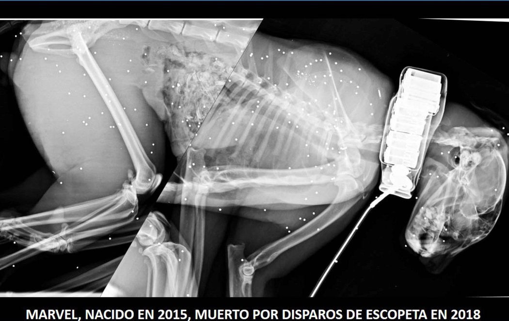 A través de su cuenta de Twitter, Simón ha remarcado que el animal, perteneciente a la población de Guadalmellato (Córdoba) fue encontrado el pasado viernes, 28 de diciembre, gracias al radiocollar que portaba. Asimismo, ha remarcado que además de "un disparo a bocajarro" que la necropsia realizada a este ejemplar macho -Marvel- ha revelado como causa de la muerte, se han detectado en su cuerpo la presencia de más de 300 plomos de escopeta.