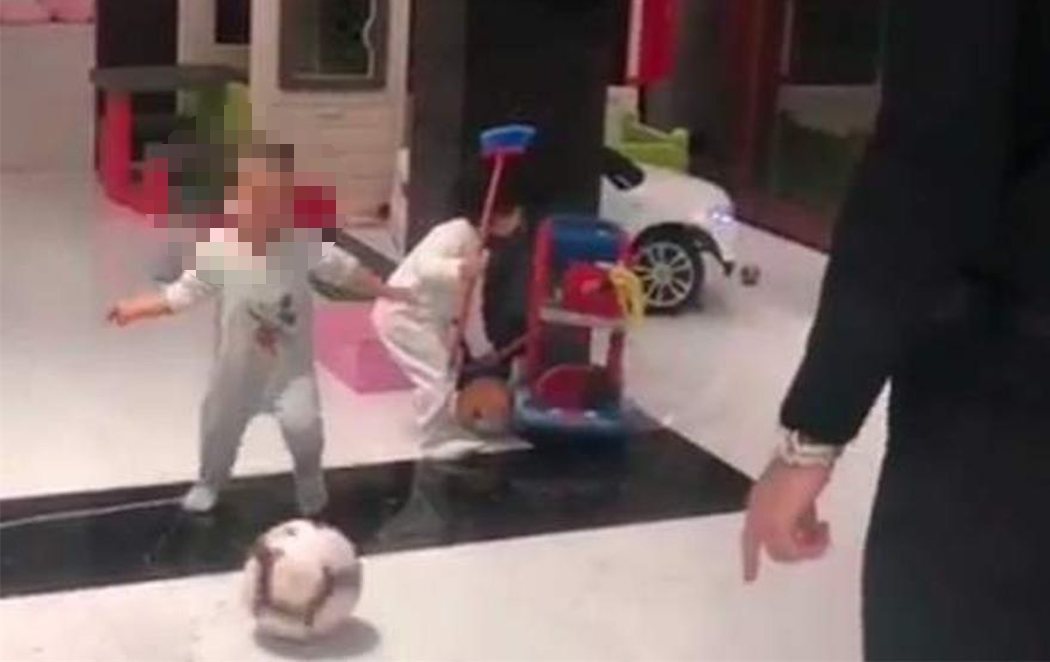 "Fuerza", le grita el padre, mientras el Mateo, emocionado, le pasa la pelota. Atrás, Eva da patadas al aire esperando su turno, pero nunca llega. Cristiano Ronaldo ignora a la pequeña, que finalmente se cansa de esperar y decide irse a jugar, paradógicamente, con el carro de limpieza de juguete.