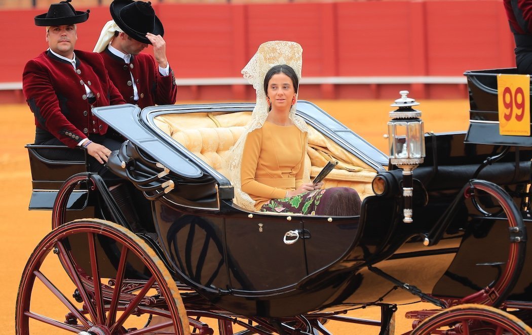 La nieta mayor de don Juan Carlos y doña Sofía ejerció de madrina en la exhibición de enganches, con la que cada año arranca la semana de la feria en la capital andaluza. En esta ocasión, estuvo acompañada por sus padres, quienes llevaban años sin coincidir en un mismo espacio público, en este caso, la Maestranza. La joven saltó al ruedo de la histórica plaza de toros sevillana montada en un coche de caballos.