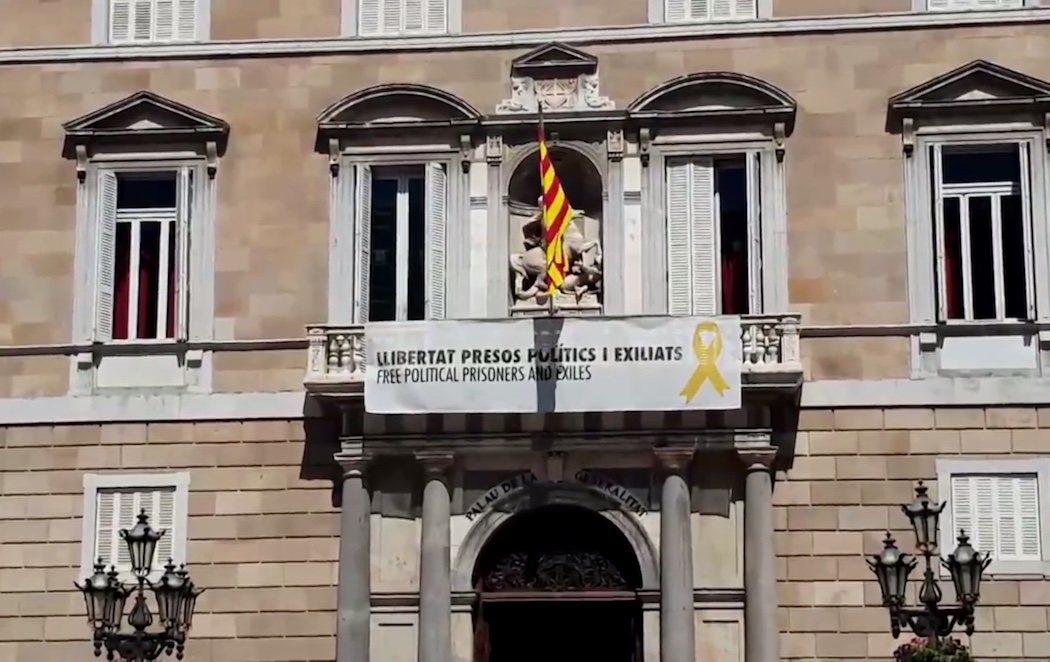 El presidente de la Generalitat, Quim Torra, vuelve a ser polémica por colocar de nuevo en la fachada del Palau de la Generalitat, la pancarta con la que pide la libertad de los separatistas presos. Junto al lema se puede ver el lazo amarillo, similar al que ya le obligó a retirar la Junta Electoral.