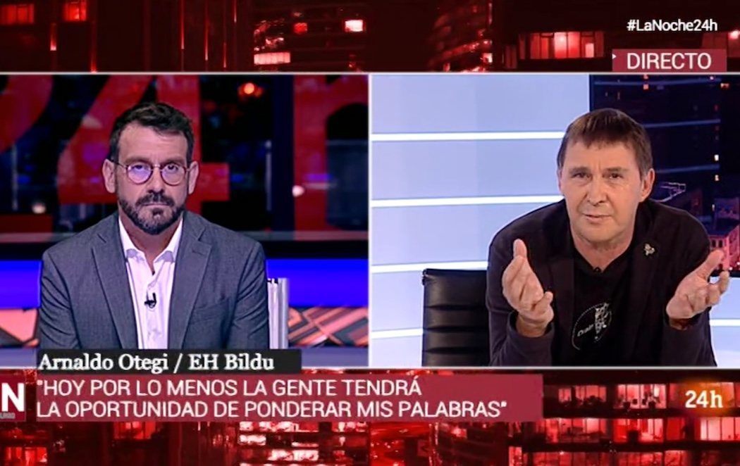 ?¿Condena usted el terrorismo de ETA, las muertes causadas por ETA? Es un sí o un no". Esta ha sido la primera pregunta de la entrevista de Marc Sala en el programa 'La Noche en 24 Horas' de TVE a Arnaldo Otegi. Una pregunta que el actual líder de EH Bildu y antiguo miembro de la banda terrorista ETA no ha querido responder, y ha intentado evitar alegando: "Voy a tratar de explicar por encima de los monosílabos. Hemos hecho algo más importante que condenar la violencia armada, hemos contribuido a que desaparezca la violencia armada de ETA en el país. Esto a mí me parece más relevante que una mera palabra".