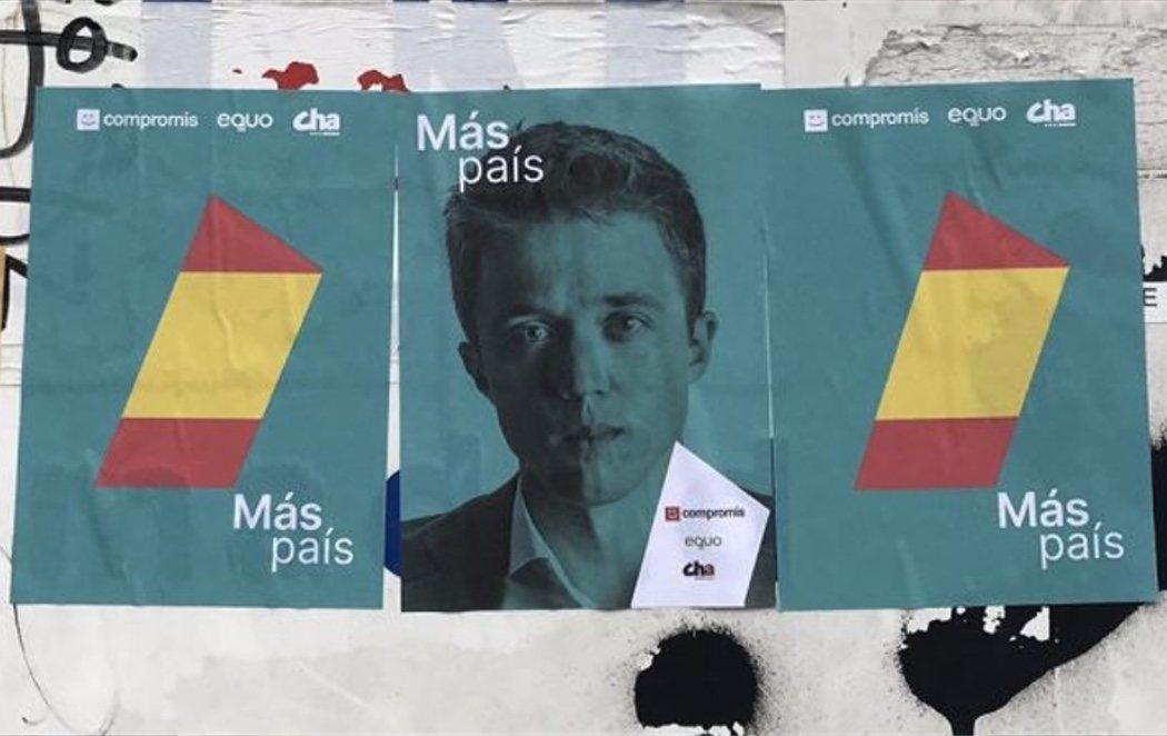 Más País, el partido que Íñigo Errejón presenta en 18 provincias para el Congreso de los Diputados, ha añadido la bandera de España a la cartelería electoral que ha colocado en algunas calles del país.