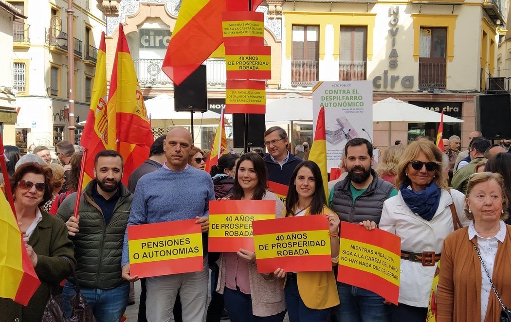 Lejos de los actos que ha organizado la Junta (que depende de este partido), la ultraderecha ha decidido organizar una manifestación en Sevilla con el objetivo de reivindicar la abolición de las comunidades autónomas porque, a su juicio, generan "un despilfarro".