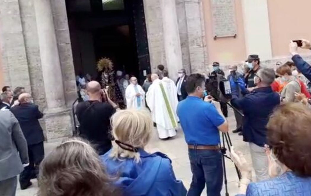 Como consecuencia del estado de alarma, la fiesta de la Virgen de los Desemparados no podía celebrarse. Sin embargo, la festividad al final ha se ha realizado en la puerta de la iglesia, con concentraciones de personas y repetidas ocasiones en las que se ha roto la distancia de seguridad. Algo que no está permitido en mitad de la crisis sanitaria en la que nos encontramos.