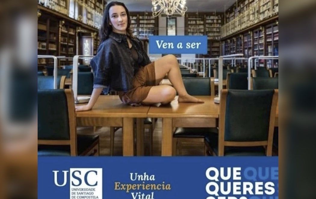 La Universidad de Santiago de Compostela ha retirado una campaña publicitaria que había recibido todo tipo de críticas en redes sociales por sexismo. Uno de los comentarios más relevantes ha llegado desde la exdiputada socialista y exsecretaria de Estado de Igualdad Laura Searra, que ha calificado esta imagen de "brutalmente sexista".