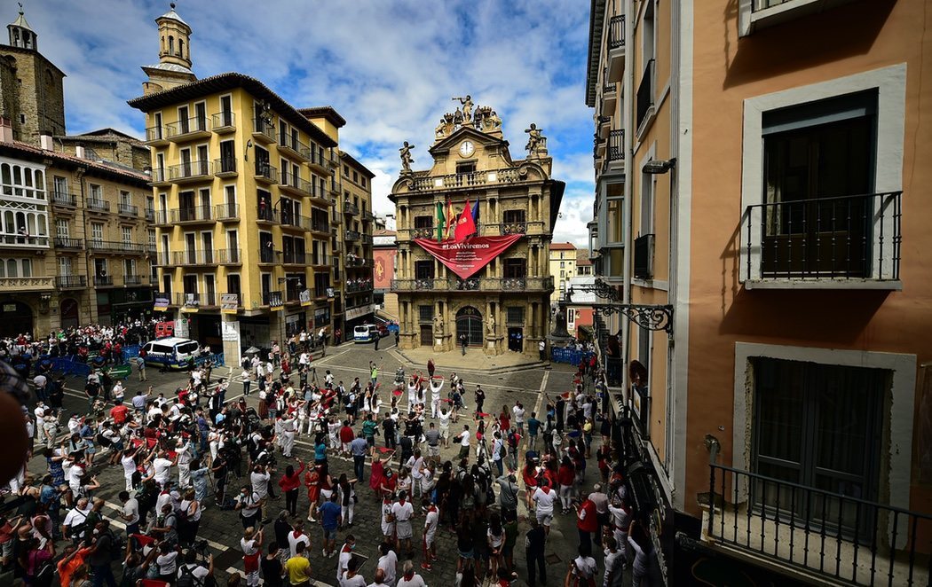 A pesar de todo, los pocos congregados no han dejado escapar la ocasión para gritar "San Fermín, San Fermín", además de un ciudadano, que ha expresado las tradicionales palabras que se pronuncian desde el balcón de la plaza Consistorial: "Pamplonesas, pamploneses, ¡Viva San Fermín, Gora San Fermín!".