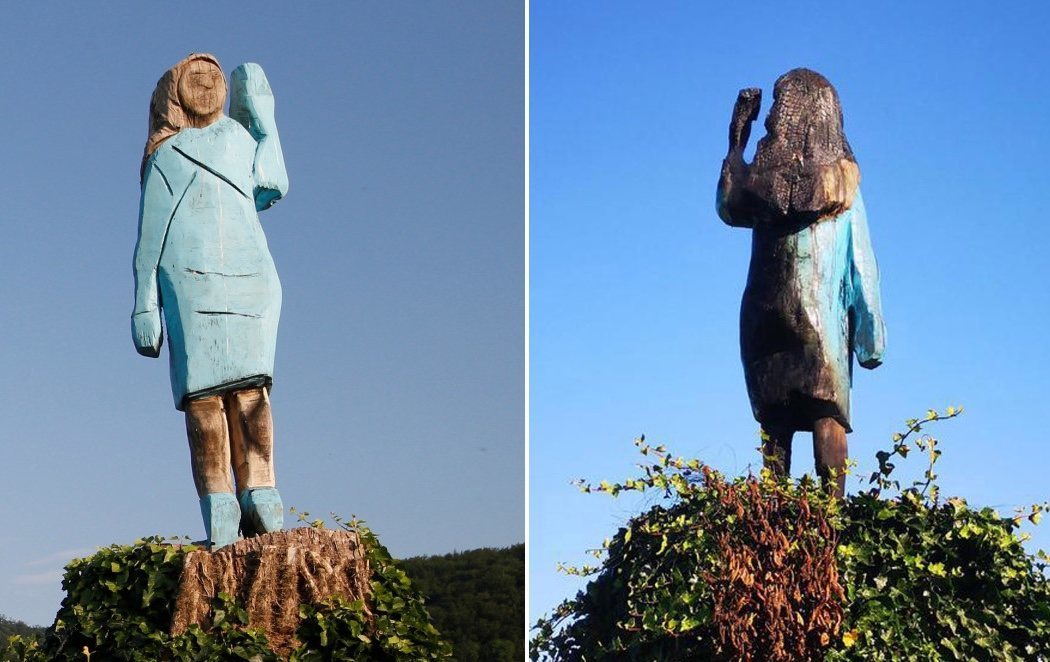 La escultura de madera de la primera dama de Estados Unidos, Melania Trump, localizada en su pueblo natal Sevnica (Eslovenia), ha amanecido completamente incendiada.