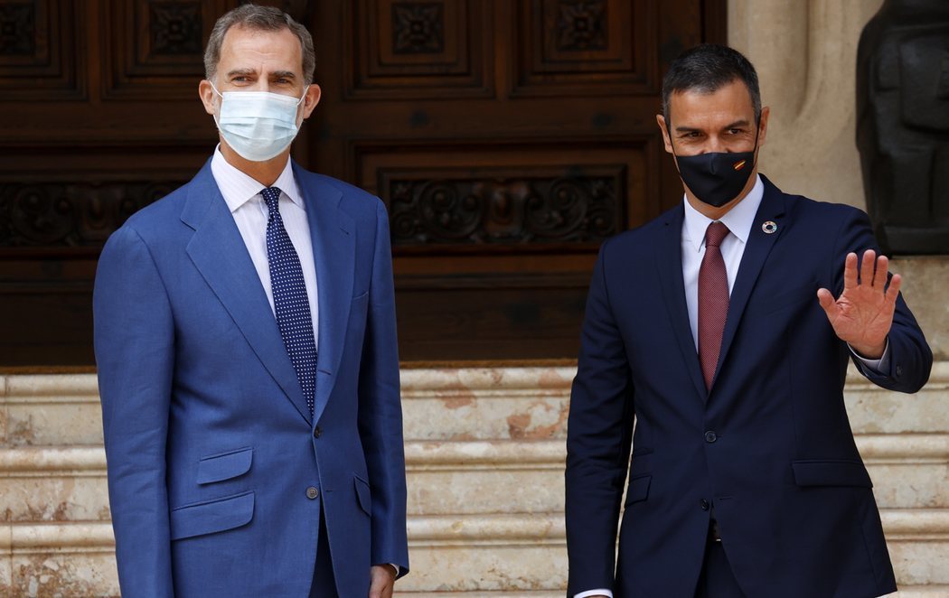 El rey Felipe VI y el presidente del Gobierno, Pedro Sánchez, han participado en el tradicional despacho veraniego este miércoles en el Palacio de Marivent de Mallorca. Este ha sido su primer encuentro oficial tras conocerse la decisión de Juan Carlos I de abandonar España.
