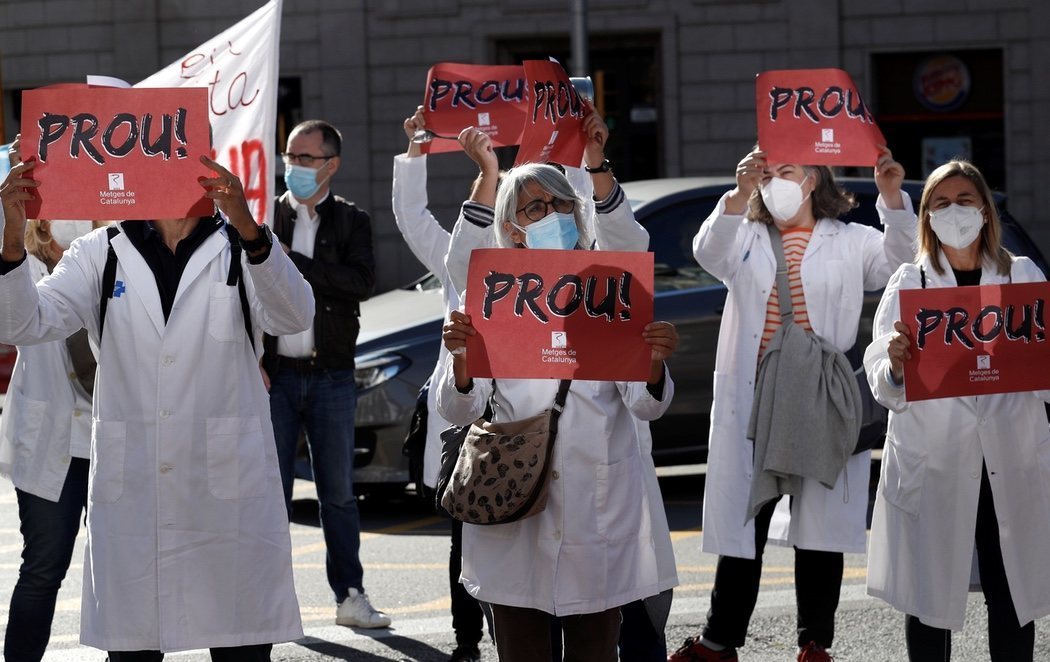 Los manifestantes denuncian que la situación viene de lejos y recuerdan la anterior huelga, celebrada a finales de 2018, una fecha desde la que han emigrado 700 médicos ante las malas condiciones que se ofrece en el sistema sanitario catalán.