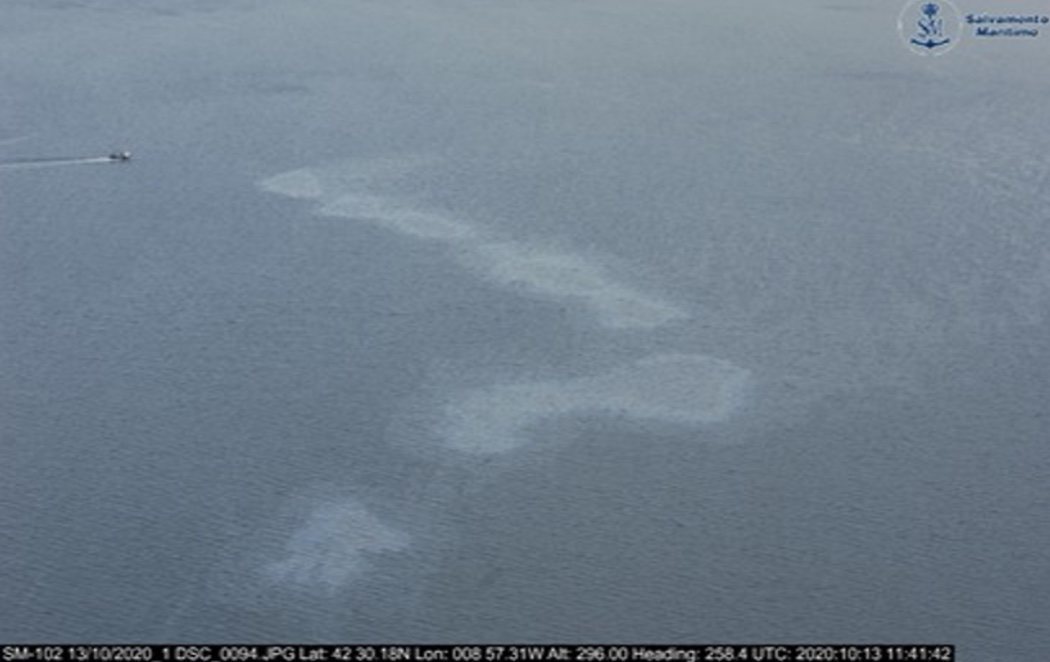 La mancha de combustible fue detectada en torno a las dos de la tarde por un avión de Salvamento Marítimo que realizaba un vuelo de observación en la zona. Según han descrito los agentes que están interviniendo en la operación, la mancha tiene un tamaño correspondiente a "unos quince campos de fútbol".