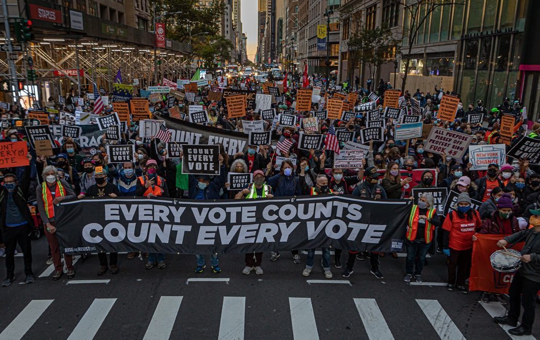 Decenas de personas han sido detenidas en Nueva York durante las manifestaciones en El Barrio de Manhattan contra la Administración de Donald Trump pidiendo el recuento de todos los votos en las elecciones. El presidente, al contrario, pide parar de contar los votos.