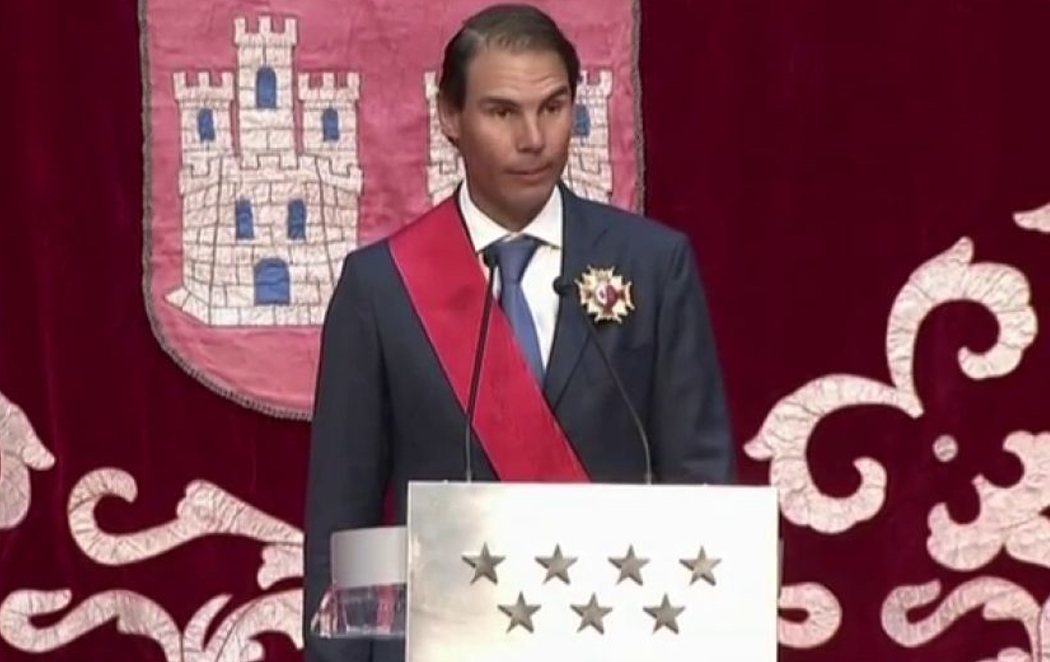 Rafa Nadal ha recibido la Gran Cruz de la Orden del Dos de Mayo en la Real Casa de Correos por parte de la Comunidad de Madrid. "Para mí es un honor recibir este galardón. Es una verdad, que no es la primera vez que digo en público, que me siento muy cercano a Madrid", ha expresado Nadal.