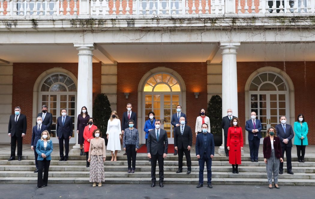 El Gobierno de coalición se ha tomado este martes una nueva foto de grupo en la escalinata de Moncloa después de que el jefe del Ejecutivo, Pedro Sánchez, reestructurase el gabinete con la salida del titular de Sanidad, Salvador Illa, y la llegada del primer secretario del PSC, Miquel Iceta.