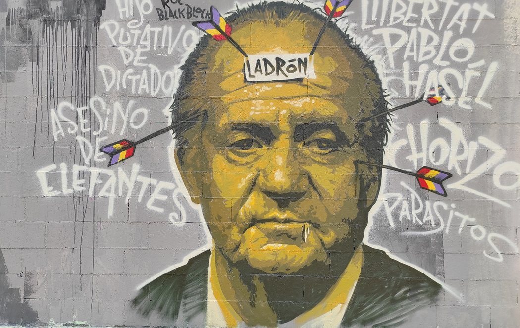 En el mural, pintado en el parque de las Tres Xemeneies, aparecía la cara del Borbón con flechas con plumas con los colores republicanos clavadas en la cabeza, con un cartel en la frente en el ºque se podía leer la palabra "Ladrón", y rodeado de proclamas como" Asesino de Elefantes", "Llibertat Pablo Hasél", "Chorizo" y "Parásitos".