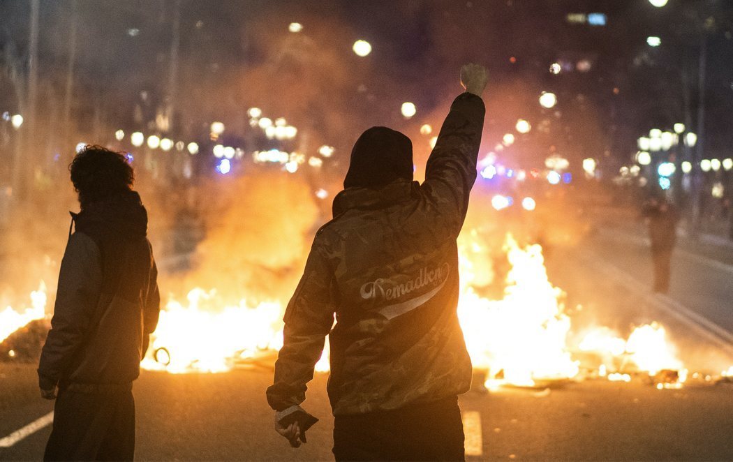 Un total de 18 detenidos y 33 heridos, la mitad de ellos policias, es el balance de los graves disturbios registrados en Barcelona, Vic, Girona, Lleida y Reus durante las protestas por la detención y encarcelamiento de Pablo Hasél. Las manifestaciones en apoyo del rapero empezaron por la tarde y acabaron de madrugada dejando una estampa de importantes daños materiales: quema de contenedores, destrozos en oficinas bancarias e incluso en la comisaría de Vic.