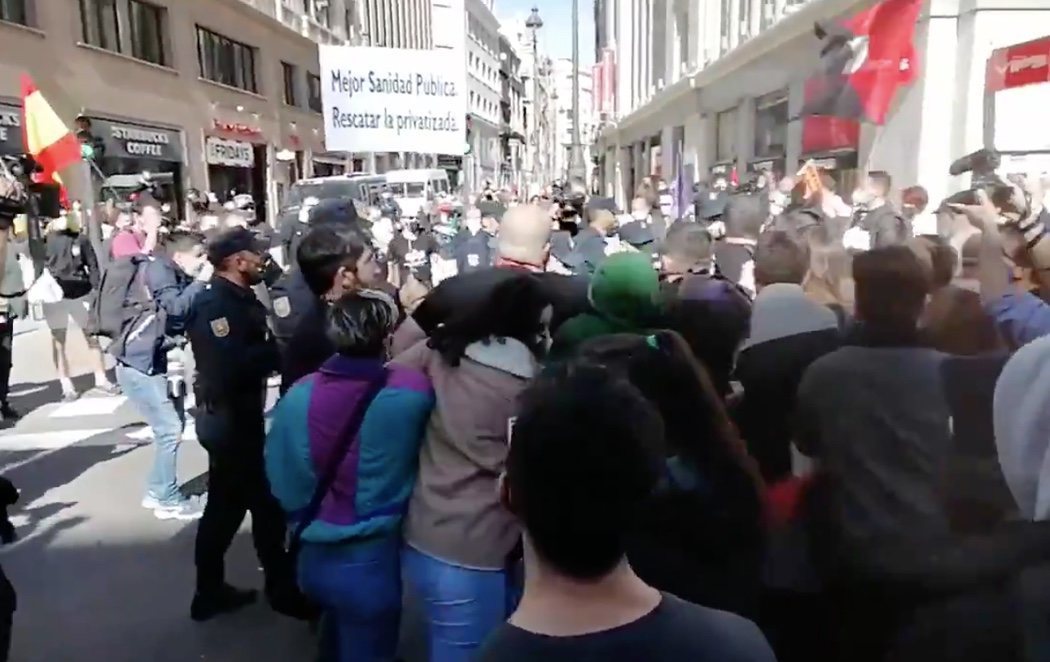 La Policía Nacional ha detenido a uno de los manifestantes que se han concentrado en contra de la privatización de la Sanidad Pública después de que la organización neonazi Bastión Frontal haya reventado el acto.