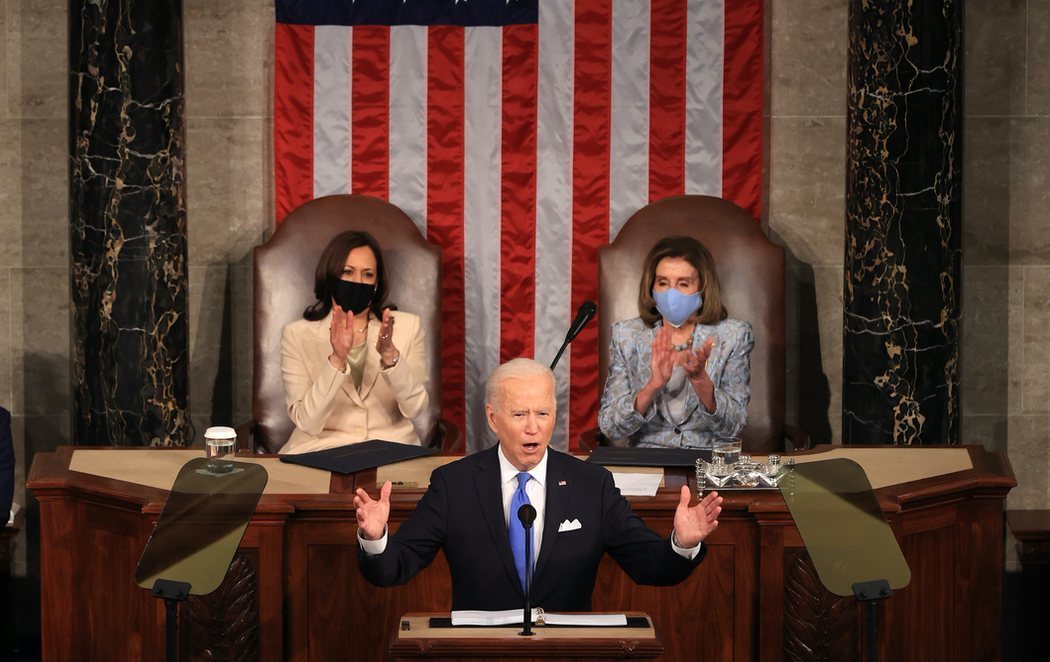 El presidente. de EEUU, Joe Biden, ha cumplido 100 días en la Casa Blanca, y lo ha celebrado dirigiéndose a las dos cámaras del Congreso escoltado por dos mujeres: la vicepresidenta del país, Kamala Harris, y la presidenta de la Cámara de Representantes, Nancy Pelosi, siendo esta una imagen histórica.