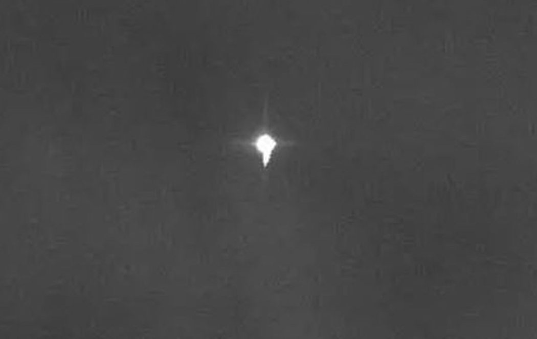 En la imagen de los astrónomos del The Virtual Telescope Project, captada el día 6 de mayo durante un segundo, se ve una bola brillante que, como ya hemos comentado, se espera que haga una reentrada descontrolada a la atmósfera terrestre este fin de semana, entre el 8 y el 10 de mayo.