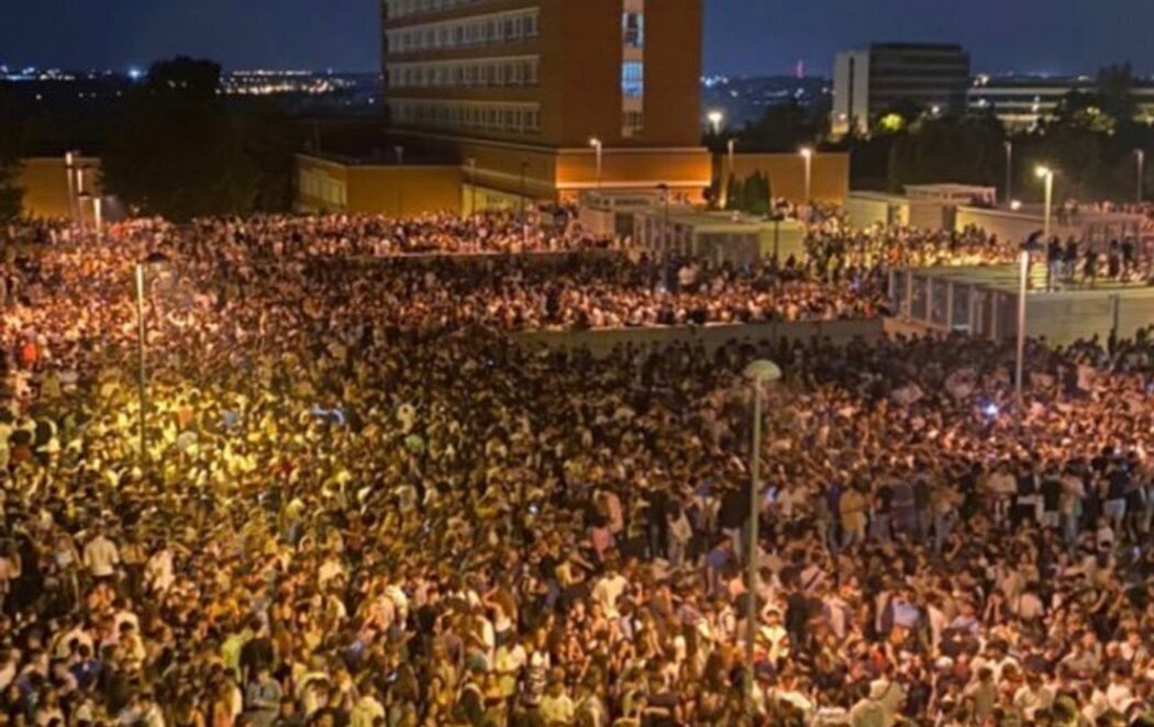 Fue convocado a través de los grupos de WhatsApp de los alrededores de la facultad de Derecho y Filología de la Complutense. La Policía Municipal estuvo en la zona desde la medianoche hasta las 07:00 horas, pero afirma que no contaba con medios suficientes para disolver la concentración de 25.000 personas.