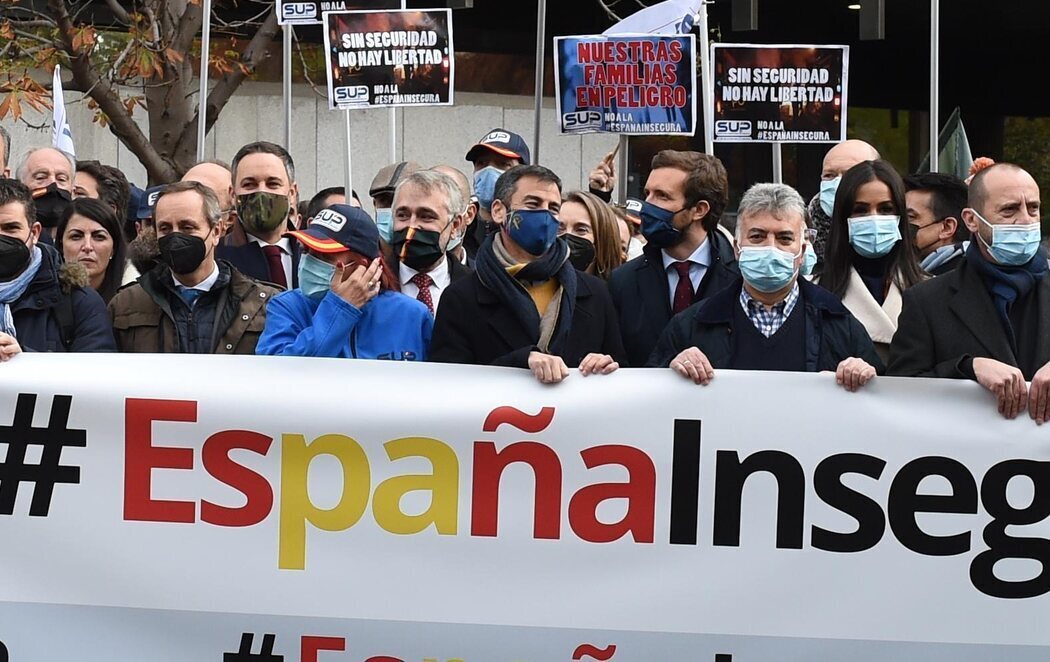 Bajo la plataforma 'No a la España insegura' han salido a las calles para manifestar su posición contraria a la derogación de la reforma del PP. El Gobierno contempla que con la nueva normativa la Policía informe por escrito de los motivos para solicitar la identificación, se reduzcan los tiempos de espera en la comisaría, que no se sancione la difusión de imágenes de los agentes o que las multas dependan de la capacidad económica.