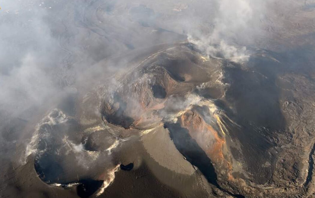 Por su parte, INVOLCAN ha compartido una imagen aérea del volcán, ya descansando, señalando que tiene "un edificio volcánico de unos 200 m de altura sobre su base, con una altitud total de aproximadamente 1100 msnm, en torno a una fisura eruptiva visible desde el cielo, con al menos 6 cráteres".