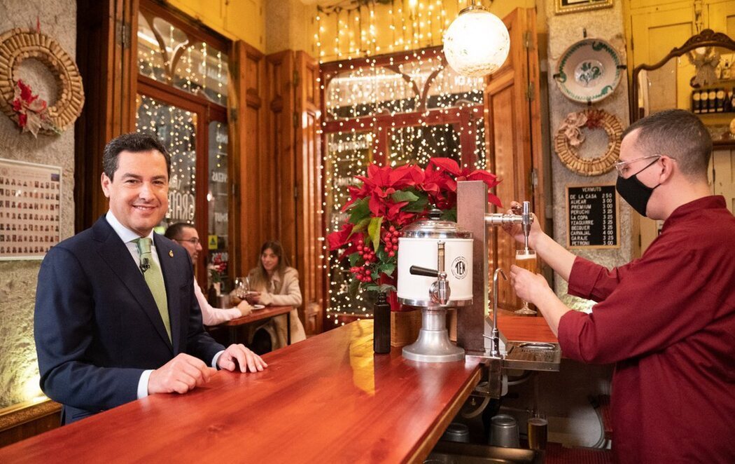 Juanma Moreno Bonilla ha hecho balance del año en Andalucía con su discurso de fin de año. El lugar elegido era, ciertamente, el mensaje tanto o más que el mensaje mismo. El presidente de la Junta ha elegido la centenaria 'Taberna Granados' de Granada para dejar claro su apoyo a la hostelería.