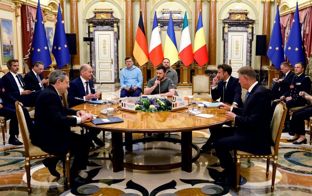 El presidente ucraniano, Volodímir Zelenski, se ha reunido con el canciller alemán Olaf Scholz, el presidente francés Emmanuel Macron, el primer ministro italiano Mario Draghi y el presidente rumano Klaus Iohannis.